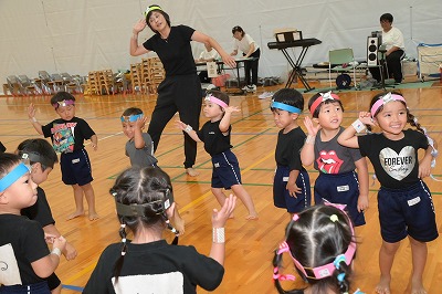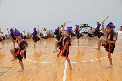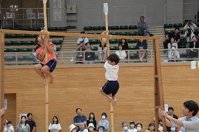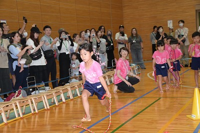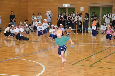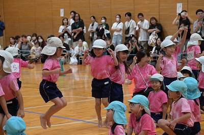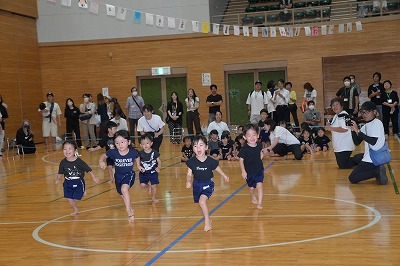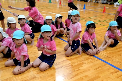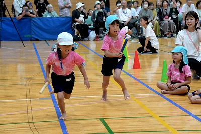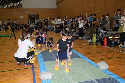 5歳児は、さすが年長児! 暑い夏に一生懸命練習してきた成果がしっかりと表れていて、息の合ったエイサーや竹馬などを披露してくれました。最後のリレーは大接戦! 応援するみんなも思わず立ち上がって大興奮でした。